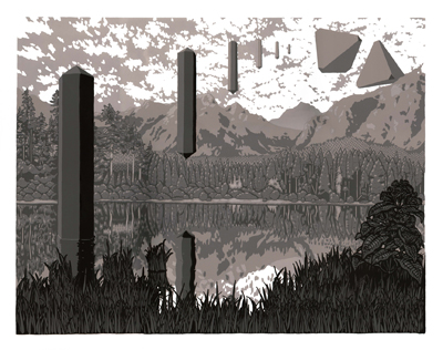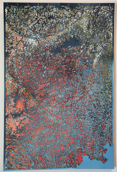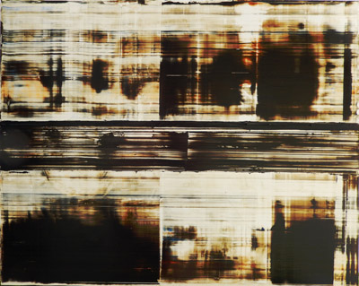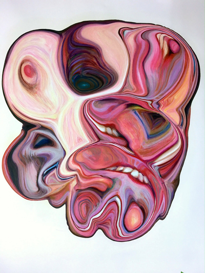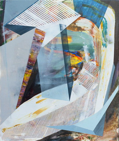 My latest works begin as self-generative digital drawings. Working in front of a monitor for long periods of time induces a disembodied state; a total immersion where a sense of the tangible world is lost in a digital space that is weightless, without surface, consisting only of light. As visual relationships develop on the screen, they suggest possibilities for translation into the tactile reality of paint. The trackpad becomes a proxy for exploring imagined terrains. The painting process is then one of testing, trying to find a specific, though sometimes antagonistic, marriage between insistent surfaces and indefinable depths.