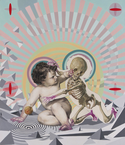 Benjamin Lowery's seven paintings conclude a five-gallery suite of exhibits focusing on painting. Counterbalancing the concurrent exhibit in our other street-facing gallery, that of works by Dustin London, Lowery's paintings are also quite large, colorful, and engaging across a wide radius. Fittingly, the energy of this show matches that of its counterpart, but with a more direct and light-hearted narrative, softening expectations, and inviting consideration on what is perhaps an unfamiliar level.