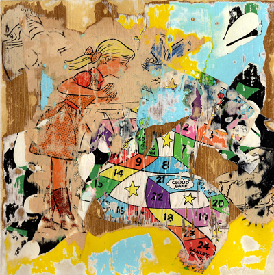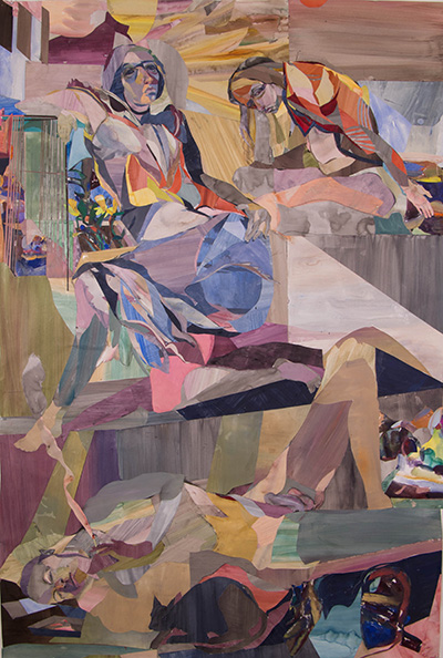Jennifer Meanley's exhibition of primarily large collages and paintings officially concludes Manifest's 14th exhibition season solo show lineup. Jennifer is one of only a handful of artists who have presented multiple solo exhibits at Manifest over the past 14 years. We last featured a full gallery of her work in 2009. Jennifer's paintings and collages evoke the sense of kinship with early 20th century Modern masters' works while bringing the sensibilities of a 21st century woman to bear on the undertones of meaning they carry forward. While complementing the paintings of David Linneweh in the Central Gallery, they boldly expand their formal and narrative qualities with a cacophony of fragmentation, as if the people missing from the former exhibit's neighborhood are all here, and we are now inside the house with them.