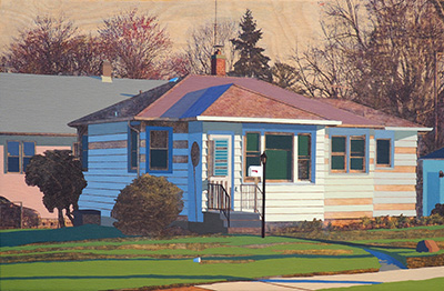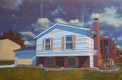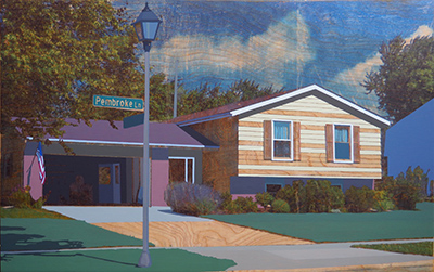 "When walking through my neighborhood my mind is flooded with observations of light as it falls over homes and manicured lawns.  Facades glisten with an intensity and variety of color that illicit a dreamlike state that feels nostalgic and prophetic in the same time.  These suburban streets transport me in time; I close my eyes and memories of backyard barbeques, bike rides, and birthday parties in the garage fill my head.  As the setting sun bathes rooftops in a warm glow I reflect on the idea of the American Dream and wonder if its tenets are based in illusion or reality."