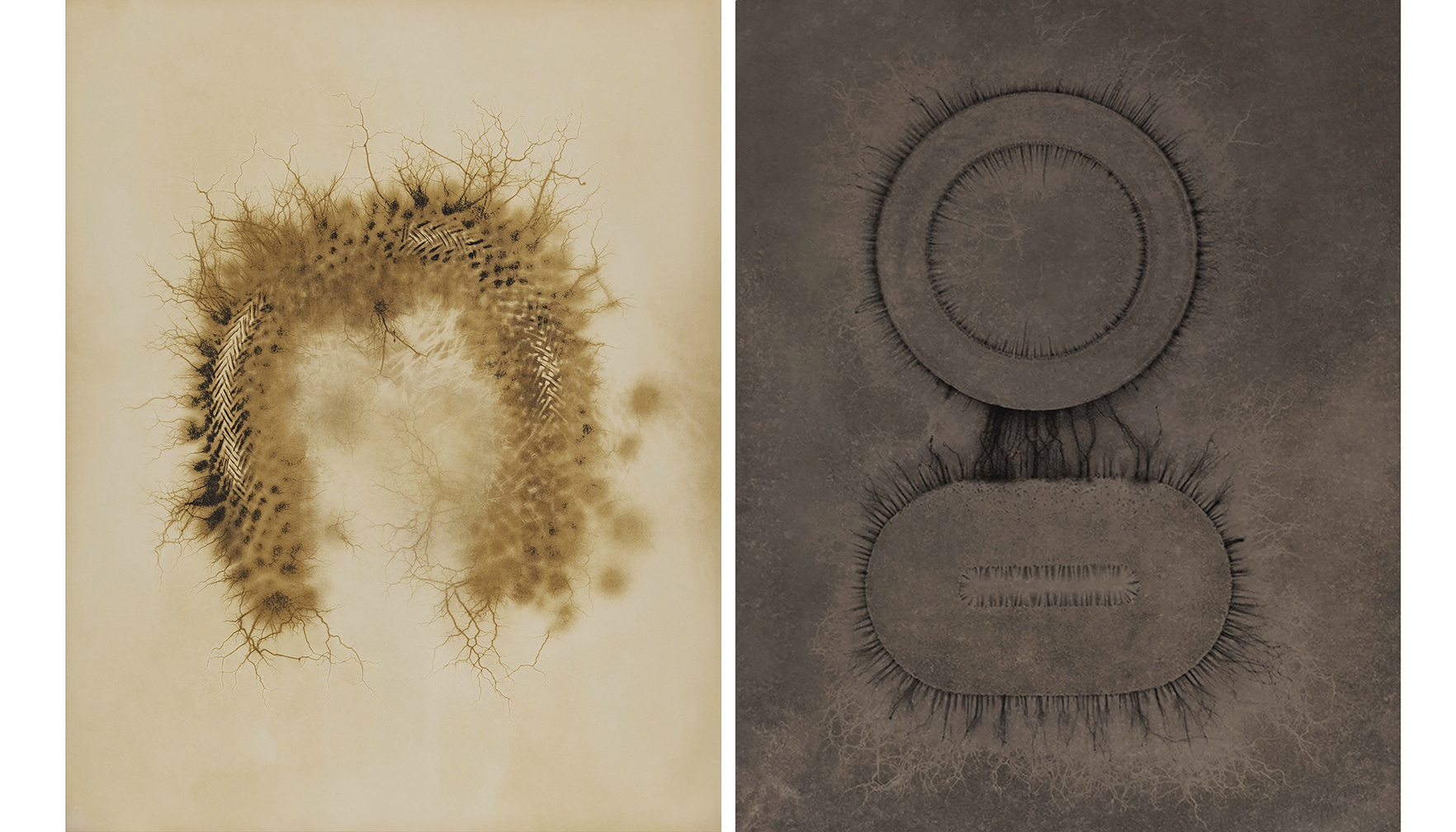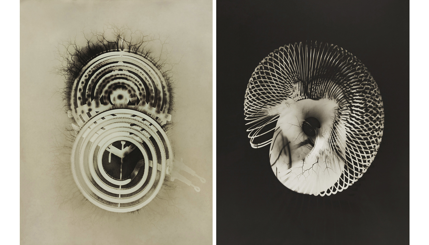 Of her work the artist states: "This exhibit includes images from an ongoing series that has evolved over years of exploration working with high-voltage photography. The more recent work represents eco-friendly chemistry for black and white photography. These photographs are evidence of an interaction between gelatin silver paper processed with organic plant-based phenol developers. The Caffenol process uses everyday ingredients: coffee, Vitamin C and washing soda. The results are paper negative shadowgraphs rendered in subtle tonal ranges of the gelatin silver emulsion. Works on view are photographic prints created in the darkroom, where nuanced experimentation makes it impossible to fully predict outcomes yet summons the beauty and complexity of form produced in the residual images. Selected objects placed on the light-sensitive surface, are exposed to high-voltage discharge from a horizontal resonating Tesla coil with added ambient light. Images are often paired or arranged as elements in more complex non-hierarchical grid configurations.” This exhibition was selected from among 162 proposals submitted in consideration for Manifest’s 17th season.