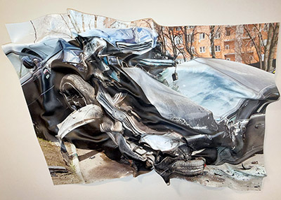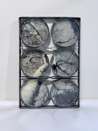 Not so many years ago, we stopped touching photographs. While print media and brick-and-mortar galleries exist, our common, everyday experience with the photograph has drastically shifted from the handling of 4” x 6” prints from the drugstore to scrolling through brilliant digital images shining out from our screens. These photographs are easily created, manipulated, and shared, but at a cultural level it cost us the sense of intimacy, of preciousness, that comes with holding an image that has dimension and weight. We lost the expectation that images do not “go out” when we turn our phones off. Has this also affected how we as a culture relate to each other? This exhibit aims to examine that photograph that does not turn off. It reminds us that a photograph exists in the world, accumulating the history that sticks to all things that take up space. It showcases the photograph that is touched, that has more than one side, that expands and bends into three dimensions, that is flipped through, that is printed onto something that had a history before it became a surface. You can touch a photograph with your fingers. You cannot touch an electronic digital image at all—you only touch the plastic container that pretends to be a photo. CORPUS called to artists for photographic-based works that re-engage the body, acknowledge their place in the physical world, and explore the impacts of choice of surface, volume, texture, material, and presentation methods on the experience of the image itself—the spirit in the body of the art. This exhibit aims to reveal the literal backstory, or other sides of what has become a sideless visual phenomenon, giving the photo back its body. Support for this FotoFocus Biennial 2024 exhibition was provided by FotoFocus. For this exhibit 72 artists submitted 233 works from 27 states, Washington D.C. and Germany. Sixteen works by the following 12 artists from 9 states were selected by a blind jury process for presentation in the gallery and the Manifest Exhibition Annual publication. Presenting works by: Dylan Bannister Sally Chapman Natalie Christensen and Jim Eyre Catherine Day Myles Dunigan Liz Barick Fall Karen Hillier Julie Mixon Amanda Musick Rachel Nemecek Carolyn Norton Kaylee Peters