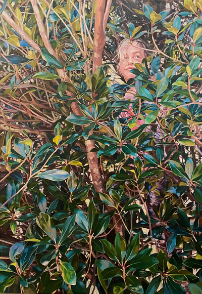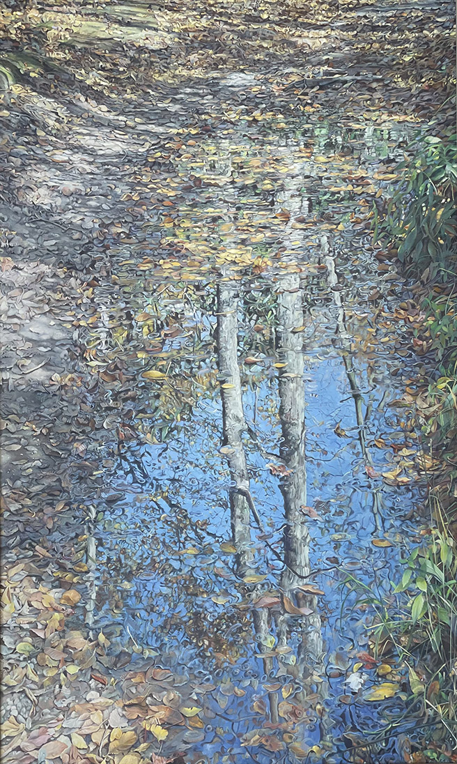 Of her work Harris states: My paintings communicate a state of controlled chaos as I combine two divergent forces and approaches: realism and abstract expression. Displaying a proficient handling of light, a mastery of images, and a skillful mark making method, the paintings confer an illusion of reality to something that isn’t. The end result is a space between magic and illusion, rooted in the American Realist tradition. My philosophy is that art is magic, and the magic is illusion. My creative theme is internal perspective. This intimate, cohesive thread connects my artwork throughout my career. My goal is to transport the viewer into another realm of intimacy and exploration. At first glance the works are just examples of narrative painting, however the narrative conveys my concern for issues that affect our contemporary society, particularly man’s impact on our environment, causing climate change. The imagery I have chosen throughout all my series (figure, still-life, and nature) are my observations that represent this impact. They are my intimate vision of life.
