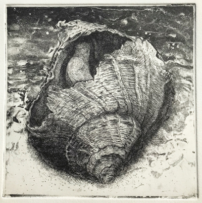 Of her work Cox states: The act of laying graphite down onto paper is personal, intimate, and immediate. It is just me, the pencil, and the paper. When I put pencil to paper there is no disguise, no veneer. The clatter of life is distilled into quiet simplicity the moment I begin. My inspiration comes from the natural world. Rocks, sticks, trees, and rope fascinate me not only in their simplicity as objects, but in how they can address the complexities of the human condition. Most recently the expanse of skies, water, and wind has captivated me. I can hold a rock or a stick. I can rub my palm along a tree trunk, I can feel the coarse fibers of rope. These are objects I can contain. A fast moving river, the depths of the ocean, cloud formations illusively changing with the wind—these I cannot contain and I am reminded that I am small. Drawing these ever-present natural objects and scenes through intense observation quiets me and connects me to both the grandeur and frailty of life. Graphite and colored pencils are my primary tools, and paper is integral to the image, not simply the surface which holds it. Paper surface and marks synthesize, yielding a single seamless result. The interaction between tool and surface is alive and vital, bringing forth imagery.