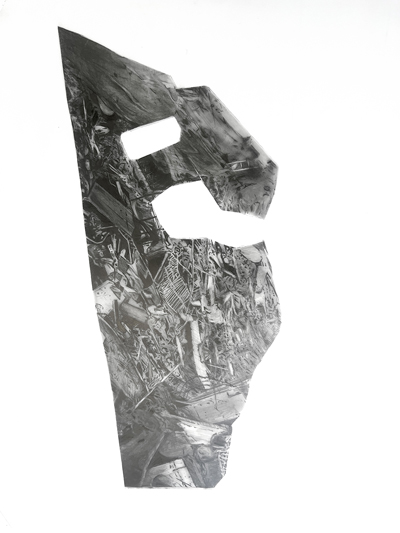 The Aesthetics of Collapse Brooks Dierdorff is an artist exploring the ways media like photography and video shape our cultural imagination of environmental collapse. His work includes a range of methodologies such as photo-based sculptures, installation, video, appropriating images from commercial and archival sources, and experimental documentary filmmaking. His work serves as an interface between political, ecological, and artistic spheres. Of his work the artist states: "My work explores how photography shapes our ideas about nature, climate disasters, and environmental collapse. The Aesthetics of Collapse is based on photographs of recent natural and man-made disasters produced for the United States Geological Survey. In the series, select photographs from the USGS digital archive are recombined and cut into an assortment of non-rectilinear shapes, a process that involves both accumulation and destruction. This exhibition was selected from among 164 proposals submitted in consideration for Manifest’s 21st season.