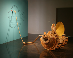 main gallery and drawing room BURB By the end of the twentieth century, suburbia became the place where over half of all Americans live and work. More than just an American phenomena, however, cities around the world have birthed an “outer ring” of domesticity, interconnected by nodes of consumer options and web-like traffic systems. This formational landscape of backyard BBQs, super-size shopping boxes, mini-vans, and cul-de-sacs is the terrain upon which many artists work today (while others respond from an urban distance). Through various contemporary visual art forms, artists are creating work that documents, explores, celebrates and criticizes these particular zones of living. For this exhibit 147 artists submitted 360 works for consideration. Twenty-one works by the following 15 artists from 11 states and Hong Kong were selected by our two-part jury/curatorial process for presentation in the gallery and catalog.
