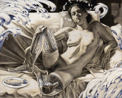 main gallery and drawing room 2nd Annual Manifest exhibits many kinds of works, from the most conceptual and experimental to more traditional. In fact we think it's important to have such a range in our repertoire. In our Drawing Center Studio we provide opportunities and instruction to professionals and students to study life-drawing. Although our studio is not limited to working just from the nude model, it is a core component in our curriculum, and our flagship studio offering. So a year ago we asked ourselves - why not add another annual exhibit to our roster, this one dedicated to works that in some way depict, explore, or address the human nude form? The first exhibit turned out to be a solid success. This year we were excited to renew our invitation to artists to submit works in any media, of any style or genre, (abstract, conceptual, highly realistic, etc.), and of any size, for consideration in Manifest's second annual NUDE, an international competitive exhibit exploring the uncovered human form in current art. For this exhibit 270 artists from 41 states and 11 countries submitted 675 works for consideration. Twenty-five works by the following 19 artists were selected for presentation in the gallery and catalog. Ami Badami Ken Buck Nora Daniel Thomasin Dewhurst Valerie Escobedo Melissa Hall Marshall Harris James Keul Daniel Maidman Douglas Malone William McMahan Douglas Prince Michael Reedy Matthew Schenk Christine Schirmer Benjamin Shamback Kendric Tonn Donna Wilson Christine Wuenschel