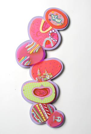 main gallery SHAPED Curated by Jason Franz One of the primary elements of art and design, shape is all too often relegated to an after thought, a mere coincidence of convenience based on manufacturing systems, the perpendicular efficiency of architecture, or bland habit. It is suitable then that Manifest hosts an exhibit for works that break outside the expected, traditional, monotonous shapes of such systems. For this exhibit 114 artists submitted 250 works for consideration. Thirteen works by the following 10 artists from 8 states and Alberta Canada were selected by our two-part jury/curatorial process for presentation in the gallery and catalog. Bobby Campbell (Morehead, Kentucky) Roxanne Driediger (Calgary, Alberta, Canada) Kurt Dyrhaug (Beaumont, Texas) Gregory Euclide (Le Sueur, Minnesota) David Hickman (Greensborto, North Carolina) Martha MacLeish (Bloomington, Indiana) Ian Magargee (Columbus, Ohio) Laurel Nathanson (Oakland, California) William Potter (Indianapolis, Indiana) Crystal Wagner (Montgomery, Alabama)