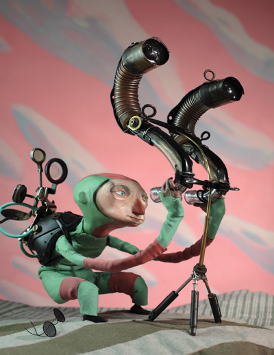 parallel space Seeing Red (Nose) A solo exhibit of works of sculptural and photographic illustration, drawing, sketchbooks, and animation. Chris Sickels, the creative force behind Red Nose Studio, creates an eccentric world we'd all like to visit. Red Nose Studio’s illustrations appear in advertising, magazines, books, newspapers, packaging, character development and animation. His work has been honored by virtually every award institution or annual and has been featured in HOW, Print, Creativity, Communication Arts and 3x3 Magazine. He has twice been honored with the Carol Anthony Grand Prize award from the Society of Illustrators 3-D Salon. Two of his short films, The Red Thread Project and Innards, were selected to screen at the 2005 and 2006 Los Angeles International Short Film Festival. He authored and illustrated The Look Book, and has illustrated the children's book Here Comes The Garbage Barge released in February 2010. Sickels client list includes such notables as Target, Microsoft, Time magazine, New York Times, Wall Street Journal, United States Postal Service, Random House Books, AARP, and SMFB (Norway). He has lectured widely about Illustration and his creative process at such institutions as Ringling College of Art, Rhode Island School of Design (RISD), University of Southern Indiana, Parkland College, Savannah College of Art and Design, Taylor University, as well as the HOW design conference in 2008 and ICON 4 conference in 2007. Originally from Indiana, Sickels earned a BFA in Communication Arts with an emphasis in Illustration from The Art Academy of Cincinnati in 1996.