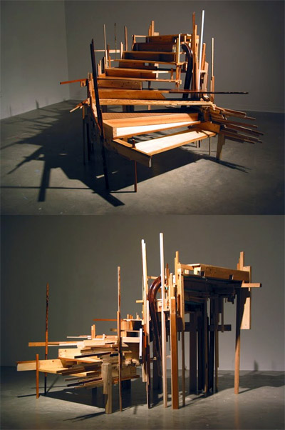 parallel space ONE: The Manifest Prize...Episteme A work by Yun Jeong Hong All of Manifest's calls for entry are competitive. The stiffness of the competition has increased in proportion to Manifest's growing reputation, powerful mission, and international reach. Our mission to stand for quality, to create a system whereby works are judged with objectivity as a primary aim, and assembled with as little subjective ego as possible has gained the respect of thousands of artists from all over the world, and a vast following of arts lovers, patrons, and supporters. We maintain that a smaller gallery enables intensely refined exhibits to take place, and we respect the creative principle of reduction to an essential conclusive statement for each exhibit we produce. This is what has led to the high caliber of each Manifest exhibit, and to the gallery's notable reputation. With this principle of reduction in mind, we were inspired by the intensity of our jury process to whittle down a collection of entries to a suitable exhibit. With this we determined to push the process to the ultimate limit - from among hundreds to select ONE single work to be exhibited in a gallery all to itself. Manifest's jury process for ONE included three levels of jury review of 400 works by 204 artists from 39 states and 17 countries by a total of 13 different jurors. Each level resulted in fewer works passing on to the next, until a winner was reached. The size and nature of the works considered was not a factor in the jury scoring and selection. The winning work is a sculptural assemblage entitled "Episteme" by Yun Jeong Hong of Champaign, Illinois. It will be the recipient of the $400 MANIFEST PRIZE, and presented in the Parallel Space Gallery as the highlight of the process, an honor to the artist, and a poignant statement for gallery visitors. The Manifest Prize is planned to be an annual or biennial offering. The cash award for the first ONE prize will be $400. Five semi-finalists will also be featured in the full-color exhibit catalog. These are works by John Carrasco, Richard Gilles, Matt Klos, Noriko Kuresumi, and David Smith.