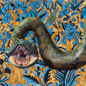 We spend our lives in completely regulated environments. Strange and unseen currents dictate the narrow framework that we navigate daily, and occasionally, just occasionally, rail against. My large oil paintings of hissing wild animals reclining on domestic carpet patterns depict the untamed spirit forced to reside within its cage.