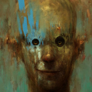 My work often involves playing with themes evolving around the parallels which exist, the contradictions within us, the dark and light of existence, peace and violence, chaos and calm. I enjoy playing with words and sometimes weave humor through the narrative to convey the absurdity of a situation. The paintings range from small atmospheric oils on board to large, more involved and complex compositions. The smaller works focus primarily on texture, creating mood and movement through the use of strong tonal ranges and loose brushstrokes.I layer the piece with a mixture of impasto and glazing and often sand back, scrape and rework the piece until a rich 'history' builds. The larger works are often theatrical in nature, depicting an array of quirky characters thrown together in a world not entirely of our own but with references to it. The works are rich in symbolism reflecting aspects of my own life and issues of a wider nature.