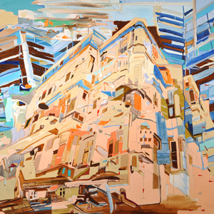 This painting 'Unleashed' is from a recent body of work titled "Impromptu Whereabouts" which explores the rise and fall of places through physical and emotional conducts.