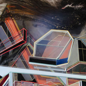 I use found and personal printed images as a tool to pull the viewer in through a marker of the "real" or familiar and then let them wonder through the nonsensical collapsing and ephemeral worlds with in the pieces. By compressing many layers together I reference the simultaneousness of the virtual and look at creating works that are nonlinear abstractions of our interactions with both the material and immaterial worlds. I attempt to create paintings of a "a place without space and the worlds in between".