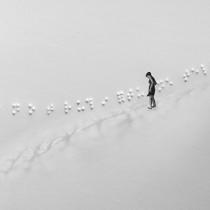 The visual result of this exploration is a foggy, ethereal quest through a world where reality is not relevant. Braille thoughts drift in and out of the snowy-looking landscape; a solitary figure treads quietly, alone. Part personal experience and part imagined meditation, One Hears the Forgotten Constantly is a harkening of the unknown—a cloudy, distant memory of a place I haven't been.