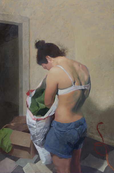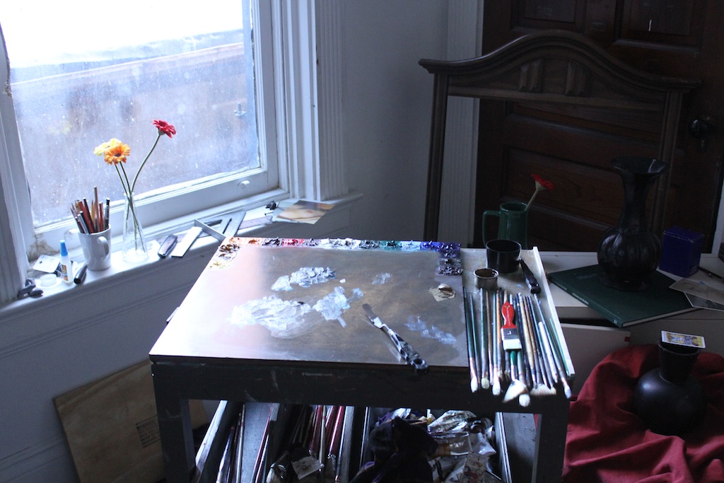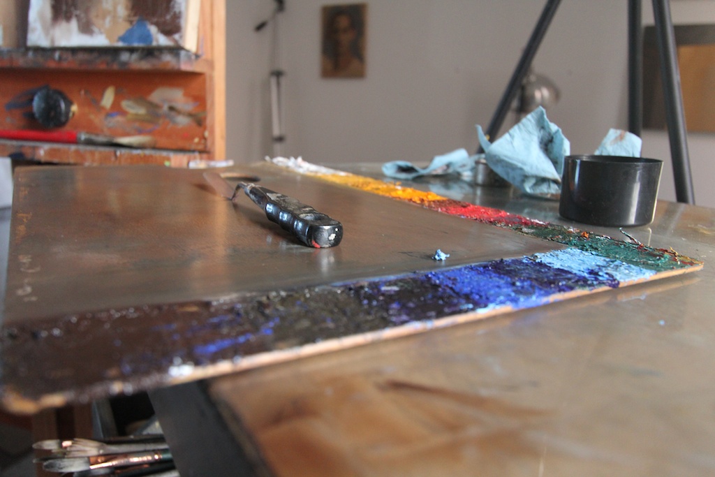 Paintings are conversations between creator, subject matter, and painting. The most poignant creations are completed 'conversations' where the artist has reacted to his subject matter and has continually expressed that reaction on canvas until each individual part contributes to the whole. This is only attainable if the artist spends many hours working, scrutinizing, and re-working until the conversation is complete. I'm usually faced with several unfinished works at once. This is a deliberate practice that allows me to keep my responses to my paintings fresh. Also, I find it essential that the studio is tidy. A well-ordered studio creates an environment that promotes both the creation of work and grants the space needed to think critically.