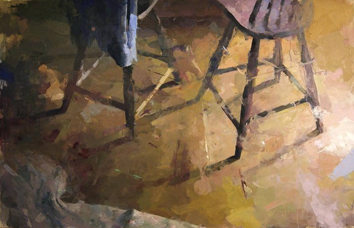 Many artists trade in their perception for a machine. Although photography can help us to further understand our individual vision, when the camera begins to shackle our view, the image loses human interaction. I work from life, utilizing the memories I hold while depicting the objects and people around me. When painting and drawing people, I study a person's specific anatomy as well as my relationship to his or her psyche. And just as light and temperature shift, I am interested in how these characteristics change as I work. The objects in my environment are also a source of inspiration to me. Whether its surface is shellacked or worn, its color saturated or faded, its structure intact or collapsed, an object has a visual history. Furthermore, it has a rich history connected to each person who comes into contact with it. I wish to examine both of these histories.