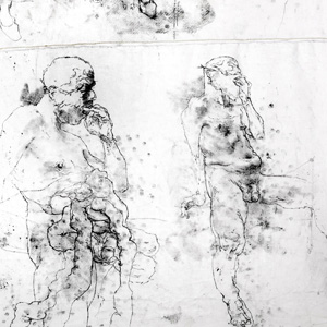 statement My work concerns studio interactions between artists and models, with a particular focus on life drawing operations. The environment of life drawing should be one in which infection, death, appetite, proximity, transmission, and action become dominant considerations. Furthermore, conventional considerations — decorum, distance, silence, stasis, antisepsis, and passivity — should be discarded. This reformed space of life drawing is favourable to a number of different theatrical and performative strategies, including the deployment of zombies. The pure-body/blank body of the zombie finds its analogue in the anti-activist performance of nudity in the drawing studio. The removal and destruction of clothing is apocalyptic (apokaluptein — to uncover or reveal). The symbolic rhetoric of zombiism manifests in carnivalesque costume (masks and corsets and belts which spill gore) and the gesture of yawning. Yawning (gaping) is a contagious vector that distends the mouth (the site of infection). The connection between yawning and contagion is still being investigated, with theories ranging from social allegiance to empathy to a functional method of cooling the brain. A key point of reference for this work is an obscure and sinister drawing by Degas of a young woman yawning in which she seems to inserting her right hand into her wide mouth. Her facial expression is not typical of yawning (as in Messerschmidt or Ducreux) but more akin to a calm consumption. She is consistently re-enacted and referenced in the drawings. Notions of good taste (confection) and bad taste (infection) are paramount. Utilising the zombie in the drawing studio (the d-zombie) is part of a broad strategy of restructuring the fundamental characteristics, expectations, behaviours, methods and relationships of drawing from life.