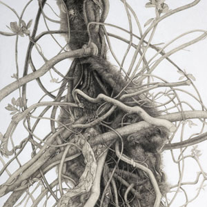 It is satisfying to make sense of a seemingly arbitrary jumble of vines, or some other natural form and, through fine lines and shading, allow it to develop into a coherent 'whole'.