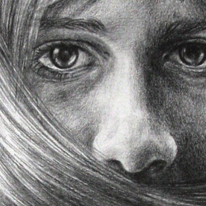 I believe in my own imagination and my own ability to create beauty through art. I use drawing frequently to sketch out concepts for pieces before I launch into action. Sometimes, however, I choose to work on longer drawings. In 2007, I made drawings of animals sleeping and then coated them in beeswax. This past year I made a series of self-portraits involving my relationship with my hair and how I can use it to speak what I'm feeling. "Wedlock" is one of these self-portraits.