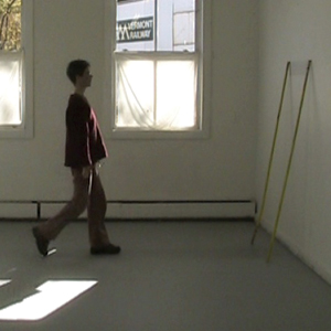 In its first iteration in Johnson, Vermont in 2009, an installation was created in a durational performance lasting 24 days. Each day, I spent between two-four hours walking back and forth between two walls, making a graphite mark on each wall each time I arrived at it. Over time, the accumulated labor evolved into two drawings: 1) two gridlike wall drawings each made of rows composed of 9,441 graphite hatchmarks and 2) a straight bandlike floor drawing made as my continual footsteps burnished the floor. At the end of the installation, the wall drawings were painted over and the floor drawing was left intact.