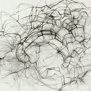 Sometimes the drawings are intuitive, sensory renderings that seem to make themselves, as if the body and arm are enacting a tracing of the unconscious, bypassing language and conscious thought.