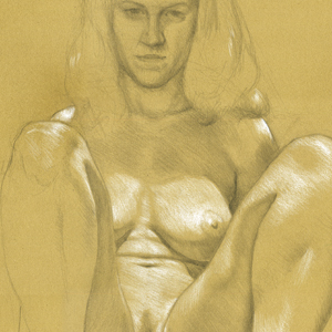 The model for this drawing, Lillian, told me not long after I met her that she refuses to take up less space than a man when riding the subway in New York. That comment worked its way around to inspiring this drawing.