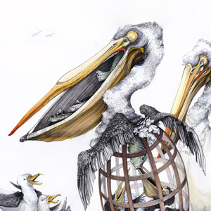 The problem with this double perception is that people are then both within and simultaneously outside of nature. They cannot see themselves as both part of the system and also destroyers of it, for hypocrisy is culturally unacceptable. Yet in truth, animals make choices, have feelings, laugh and share. They garden, babysit, and mourn their dead. People are discovering that these things they want to declare as being strictly human are also part of glorified nature. The divisions humans hold in their minds are constantly being broken down by science, man's most honest invention. I am interested in this discussion, and creating work that visually portrays animals living within natures systems, but metaphorically shows the similarities in human's day to day existence.