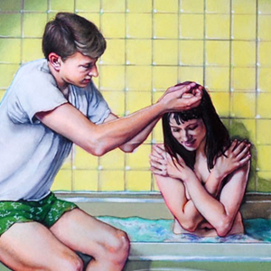 Looking back on past work I notice that regardless of the ideas I consciously attempted to explore (the rewards and limitations of domesticity, nostalgia for childhood, the thirst for sustained intimacy, etc.) my paintings remains largely preoccupied with my personal life–with my relationships, hang-ups, family and friends. Recently, I've been making paintings that depict futures I imagine for myself–both futures I fantasize about and ones that I fear. That said, my most basic desire is to make paintings that fight for something like grace amidst the pressures of desolation, disengagement, and selfishness.