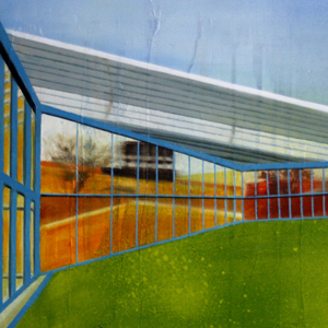 Loneliness pervades these depopulated paintings. There is, instead, the satisfaction of hard-edged abstraction with its sharp geometry aided by lack of narrative. However, there is emotion in the color, which invites the viewer to experience explorations of space on my terms. They can fall in love with a place they will never know, places that I control by bringing together different views of each city in the framed composition.