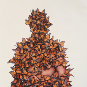 The butterflies act as insulators from the gaze of viewers, while simultaneously each depicted individual embodies a nakedness that contradicts the social convention of habitual categorization. 'Emperor's New Clothes' imagines personal isolation borne out of anxiety as a spectacle of metamorphic beauty.