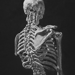 Drawing is the fundamental basis for my work as a figurative artist. Putting pencil to paper is the impetus for all else. Having studied and taught artistic anatomy extensively, I am fascinated by the beauty and complexity of the human skeleton as a subject for drawing. These drawings evolve gradually, starting out as broad, general statements of form which steadily become more refined and specific as the drawing process moves forward. I begin by looking for the major forms, proportional relationships and alignments, using straight lines and geometric shapes to map out the essential structure. As the drawings progress, I carefully and continuously observe, measure, and adjust, refining the forms using line and value until they are highly detailed and precise. I apply this principle of working from general to specific in all of my drawings and paintings. I have taught drawing at the college level for fourteen years, and am privileged to teach currently in the Foundation Department at The College for Creative Studies in Detroit, MI.