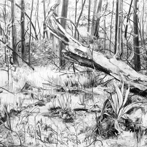 Drawing is a physical expression of seeing that makes possible a more intensely focused and multilayered exploration of the world. My work is grounded in drawing the perceptual and experiential landscape. I work in the woods, which enables me to directly experience my subjects. Created over many visits, the drawings explore ideas of time, investigation, and the unexpected.