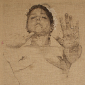 My life and art are interwoven. I don't fight that, instead I embrace it. I seek the simplest medium to accurately express my subject, and in this instance I chose to work on raw linen, with charcoal, pastel and embroidery.