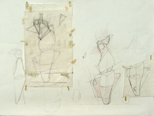 Drawing is critical to the development of my large-scale sculpture, which requires thorough consideration prior to fabrication. Sketches and scale drawings are crucial steps, not only in originating ideas, but also in determining the final form and how it will be constructed. Sketching provides a direct exploration of ideas that is relatively rapid and mutable; scale drawings enable me to proportion forms effectively. My sculptures derive their abstract form partially through utilitarian objects specifically chosen for enlargement to monumental scale. Studying and dissecting these objects through drawing is key to understanding their form, function and history. Drawing on tracing paper facilitates seeing compositional possibilities through overlaying one drawing upon another and by eliminating the need to redraw forms that have been determined. I am interested in creating a sculpture that invites a shifting of perspectives that presents a multiplicity of viewpoints ranging from the organic to inorganic. Drawing refines the sculptural idea and the specific range of associations and representations within the work.