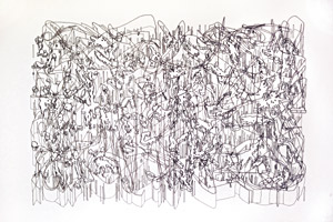 Both borrowing from, and subverting my training as an architect, I'm interested in exploring drawing not as resolute design, but as a methodical, exploratory process. My interest lies in what I would term organic specificity - images that are trapped between a natural fluidity and a drafted technical style. The result is a synthetic landscape that is ambiguous in terms of scale, volume and representational meaning, all which must be moderated by the viewers themselves. In this sense my drawings are equivalents of the grotesque a decorative style that evolved around 100 B.C. Geoffrey Galt Harpham, in his book On The Grotesque, Strategies of Contradiction in Art and Literature, notes its real threat: