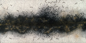 silk. Layer upon layer of India ink and machine embroidery